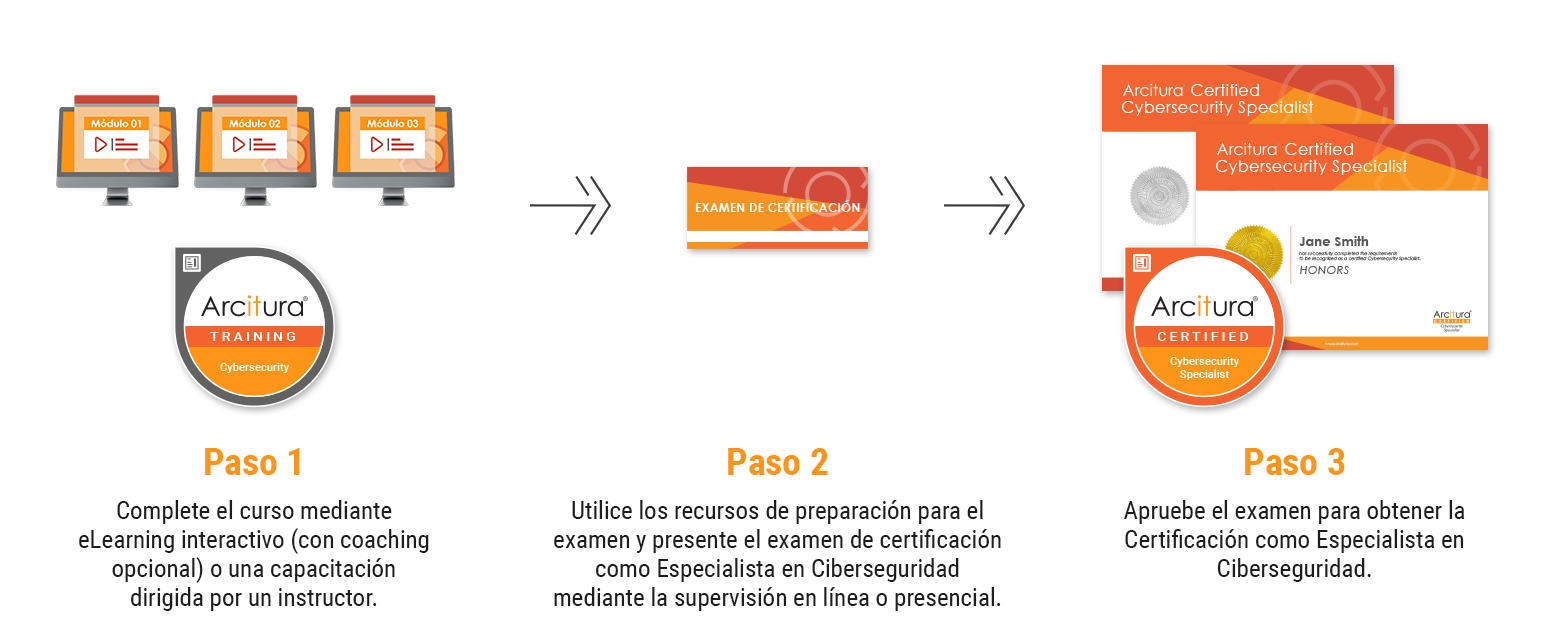 Complete el curso de Ciberseguridad y, opcionalmente, acredítese como Especialista en Ciberseguridad aprobando el examen de certificación. Puede comprar el curso ahora y obtener el examen más tarde, o puede obtenerlos juntos con un descuento como parte del Paquete de certificación.