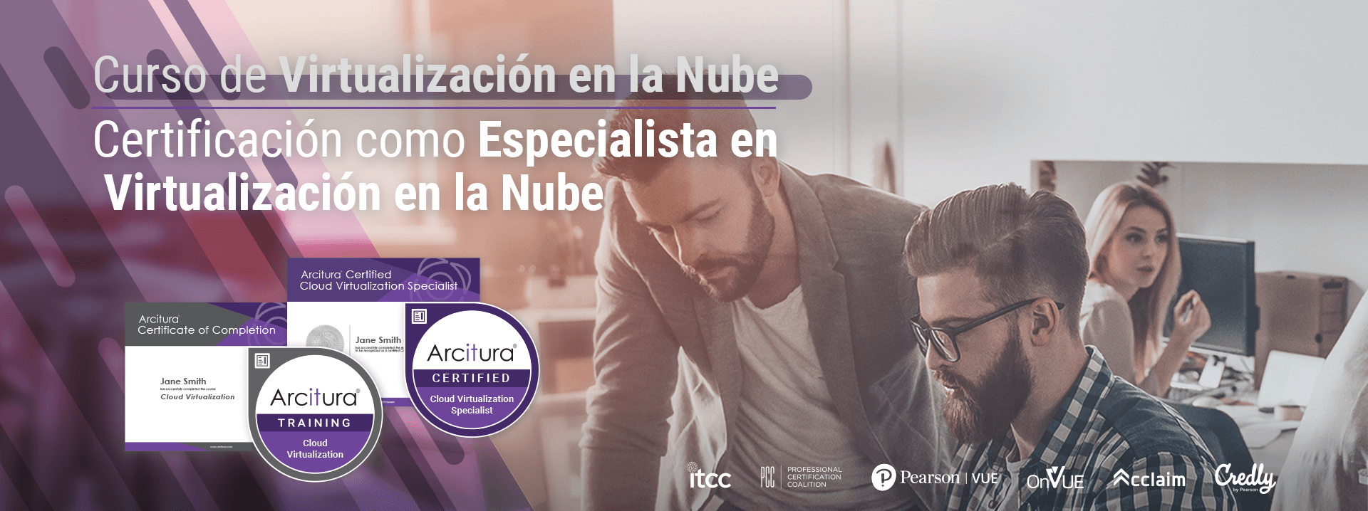 Complete el curso de Virtualización en la Nube y, opcionalmente, acredítese como Especialista en Virtualización en la Nube aprobando el examen de certificación. Puede comprar el curso ahora y obtener el examen más tarde, o puede obtenerlos juntos con un descuento como parte del Paquete de certificación.