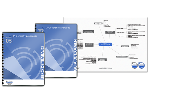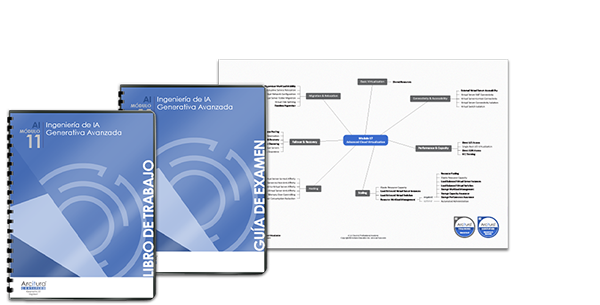 Este módulo cubre una gama de redes, modelos y técnicas comunes de IA generativa, incluyendo redes neuronales especializadas y prácticas para gestionar y optimizar sistemas y procesos de entrenamiento de modelos de IA generativa. El módulo no cubre fórmulas matemáticas ni programación y está dirigido a profesionales de TI en general.