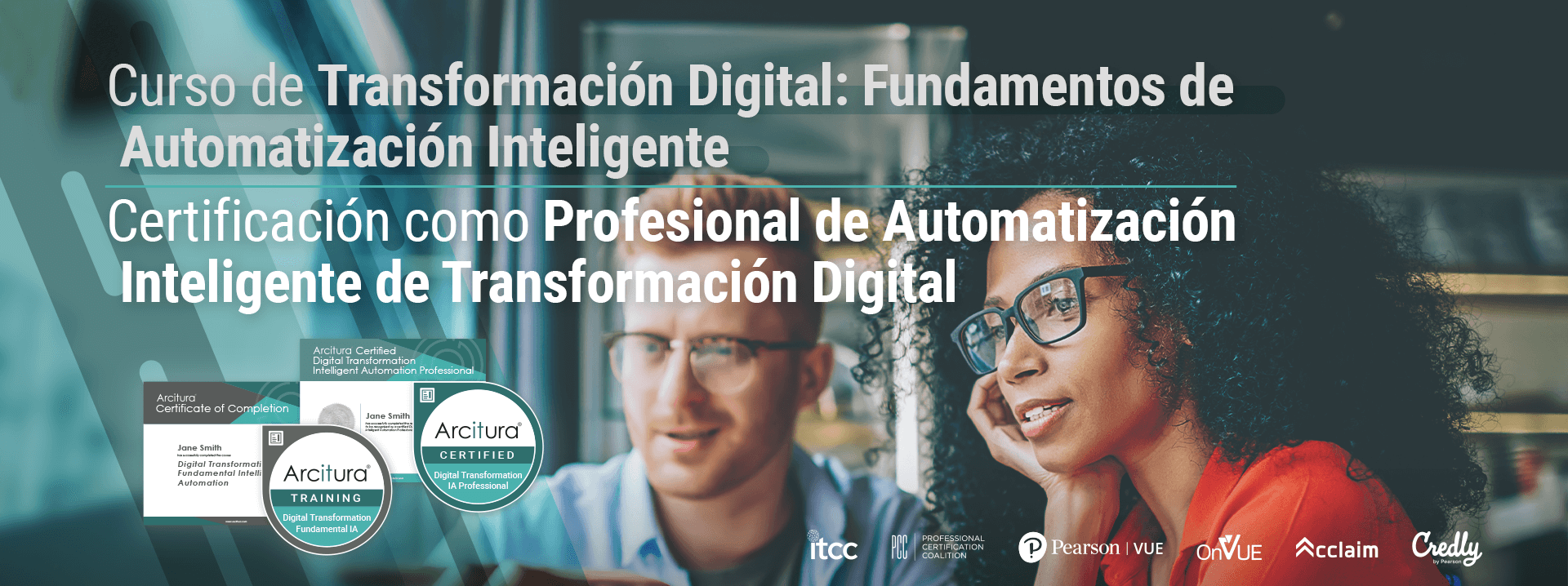 Complete el curso de Transformación Digital: Fundamentos de Automatización Inteligente y, opcionalmente, acredítese como Profesional de Automatización Inteligente de Transformación Digital aprobando el examen de certificación. Puede comprar el curso ahora y obtener el examen más tarde, o puede obtenerlos juntos con un descuento como parte del Paquete de certificación.
