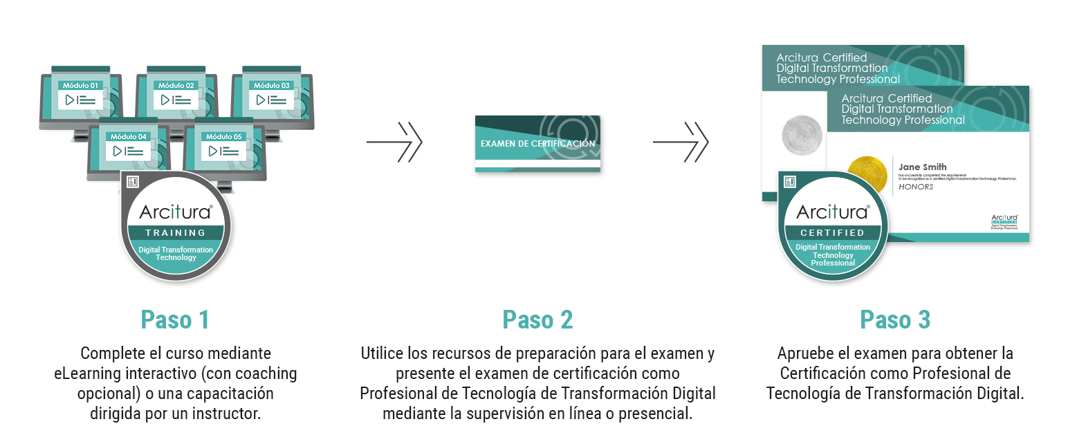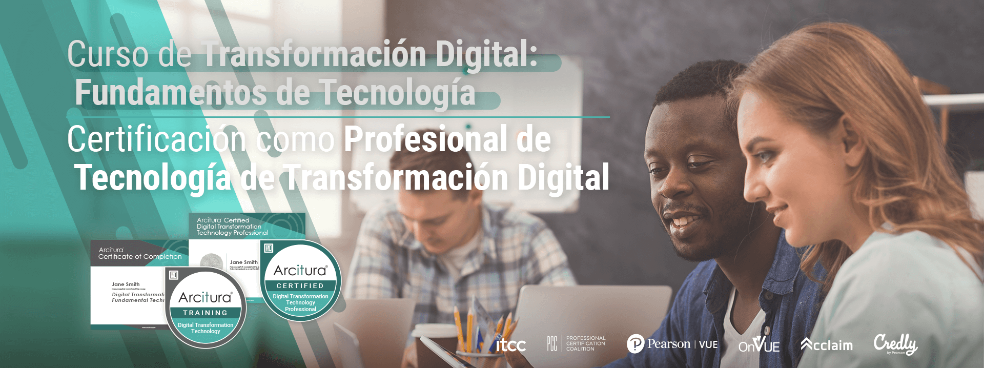 Complete el curso de Transformación Digital: Fundamentos de Tecnología y, opcionalmente, acredítese como Profesional de Tecnología de Transformación Digital aprobando el examen de certificación. Puede comprar el curso ahora y obtener el examen más tarde, o puede obtenerlos juntos con un descuento como parte del Paquete de certificación.