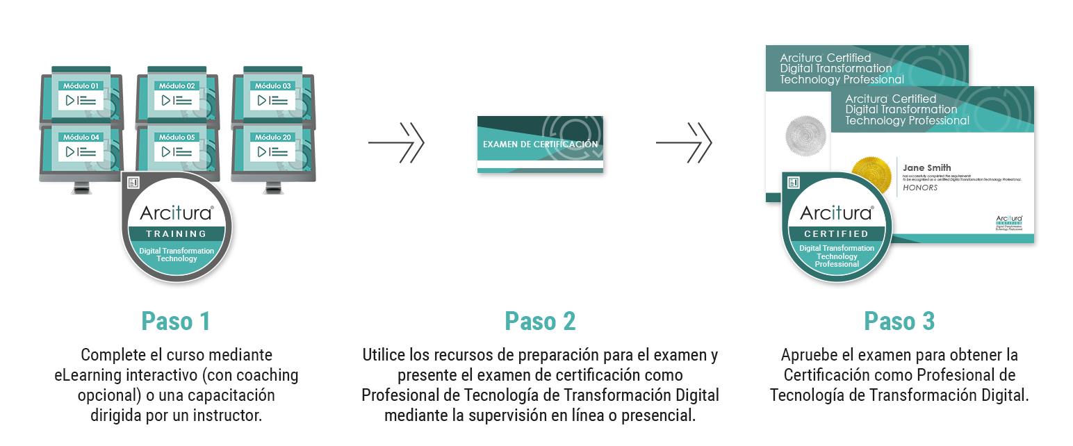 Si ya completó los módulos de Especialista en Transformación Digital, puede adquirir un curso parcial (o un paquete parcial) que contiene únicamente los módulos específicos de la ruta de Profesional de Tecnología de Transformación Digital aquí.